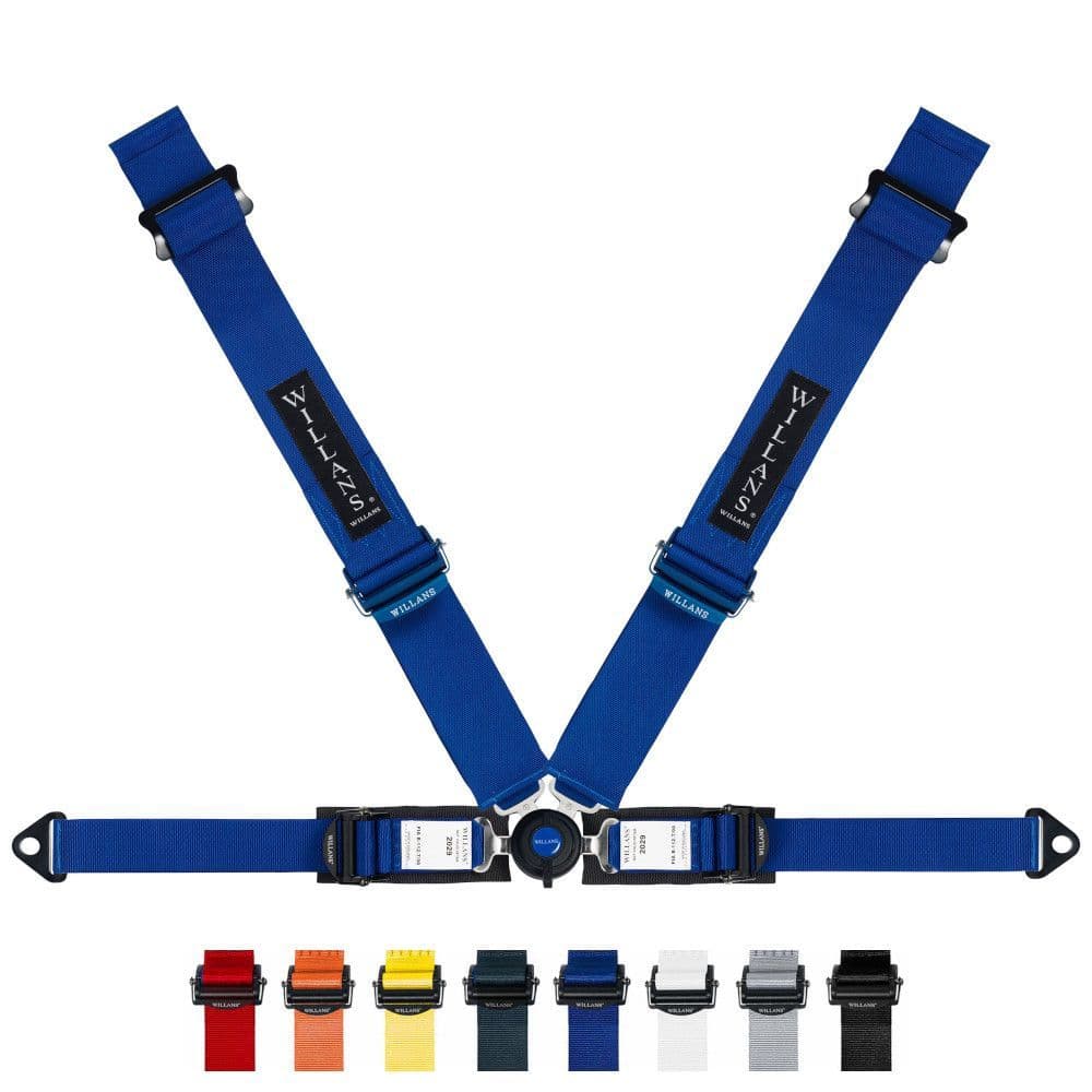 Webbing can be supplied in a range of colours for this harness. Standard colours are Willans Blue, Red, and Black. Signature colours are Orange, Yellow, British Racing Green, White, and Silver/Grey (please use dropdown to select colour required). Please note the following colours are not available when ordering this harness with steel adjusters: Signature Orange, British Racing Green, and White.